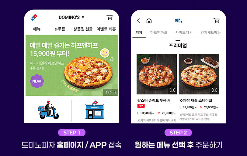 * 도미노피자 할인 혜택은 매장 사정에 따라 변경될 수 있으니, 주문 전 해당 매장에 도미노피자 이벤트 적용 여부를 확인하시기 바랍니다.